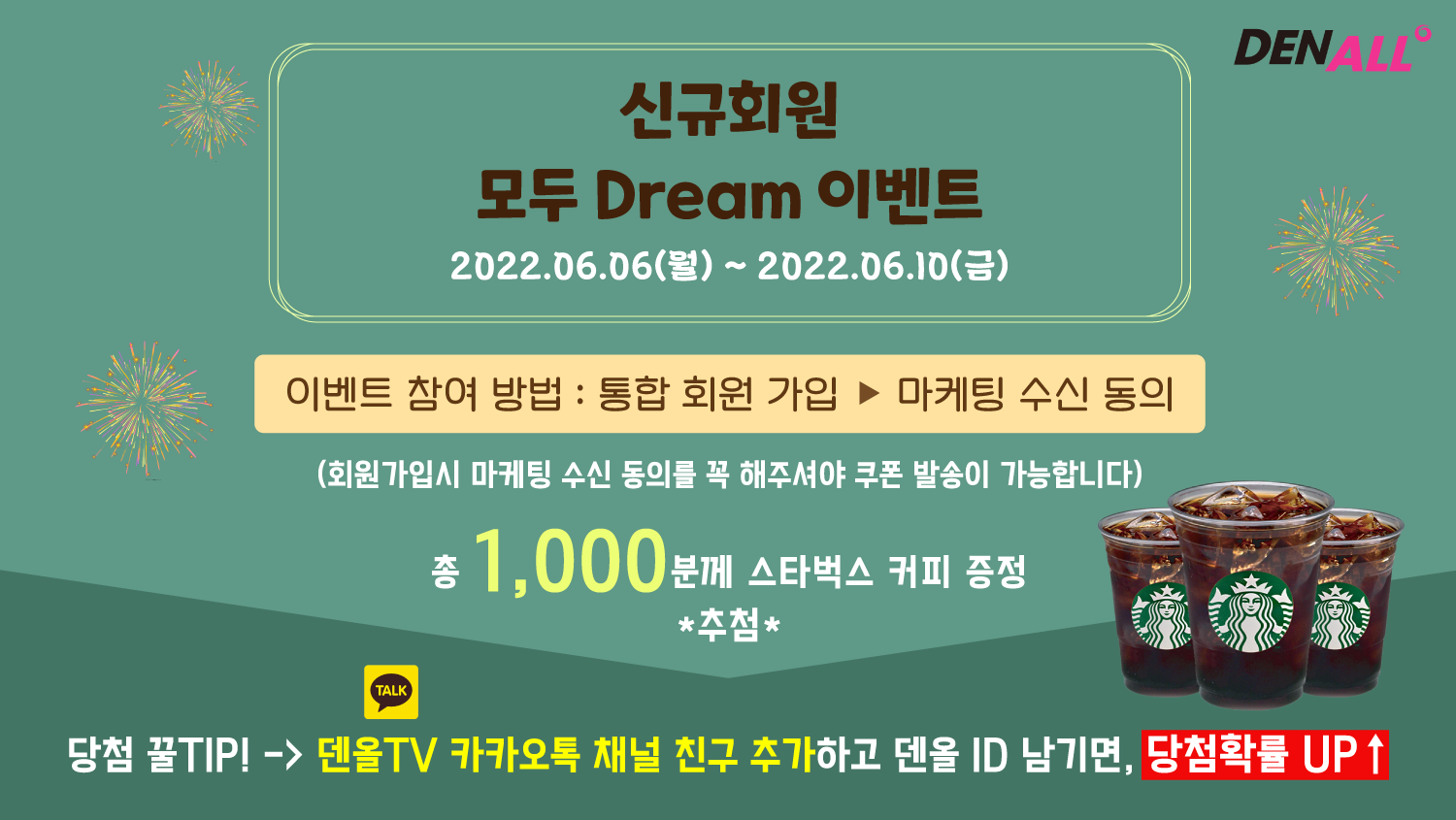 | 이벤트 | 신규회원 모두 Dream 이벤트 | 등록일 2022.06.03 | 조회수 1054 | 공유하기 | ||