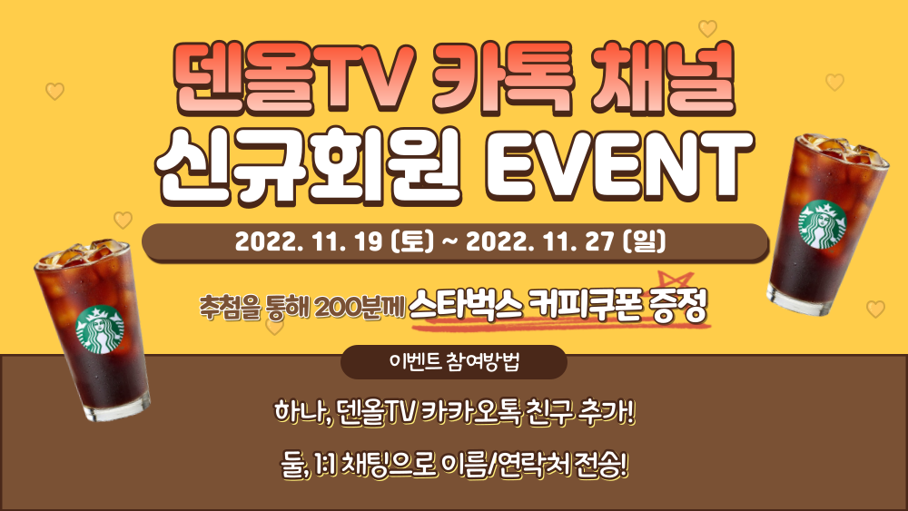 덴올TV 카카오톡 채널 추가하고 커피쿠폰 Get하세요!