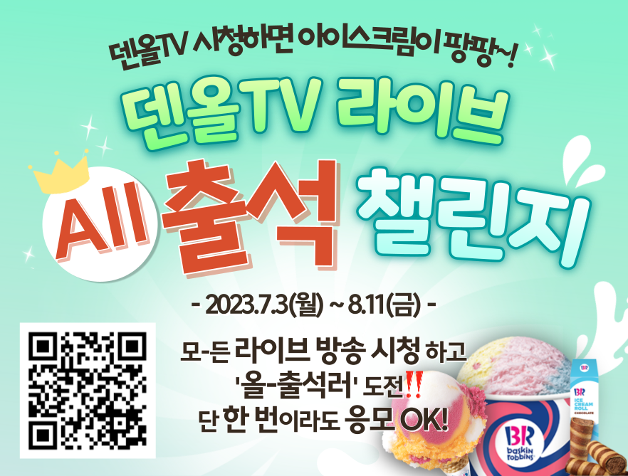 | 이벤트 | 덴올TV 라이브 ALL출석 챌린지 | 등록일 2023.06.30 | 조회수 507 | 공유하기 | ||