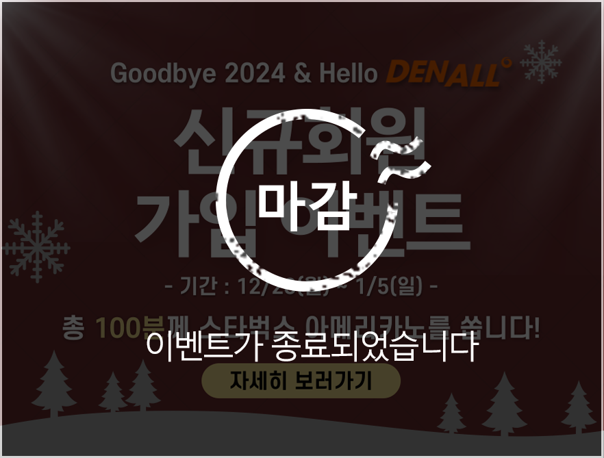 | 이벤트 | 덴올 신규 회원 가입 이벤트 | 등록일 2025.02.11 | 조회수 3330 | 공유하기 | ||