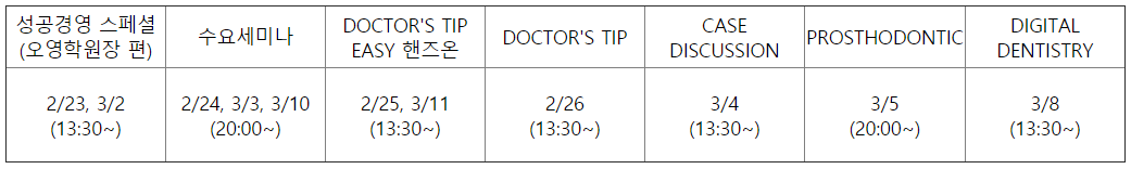 ![]() 대표 치과전문포털DENALL 개국 1주년을 맞아 실시간 채팅에 참여해주신 회원660명에게 커피 기프티콘을 드립니다! 1. 이벤트 기간 2021.02.22(월) ~ 03.14(일) 3주간, 실시간 채팅 댓글 참여 2. 이벤트 소개 EVENT 채팅하GO! 커피받GO! 이벤트 기간 동안 실시간 채팅에 참여해 댓글을 남기는 회원에게 커피 기프티콘 발송 (프로그램당 60명/ 총 660명) 3. 이벤트 응모방법 ① 덴올 로그인을 한다. ② 생방송 중 채팅창에 “개국 축하메시지”, “주제에 관한 질문” 등 댓글 작성 ※ 이벤트 기간 내 총 11회 생방송 예정 ![]() 4. 당첨자 선정 방법 - 프로그램당 실시간 채팅 참여 회원 통계 후 랜덤 추첨 (프로그램당 60명/ 총 660명) 5. 당첨자 발표 및 경품 발송 - 이벤트 기간 내 각 방송 종료 다음날 당첨자에게 커피 기프티콘 발송 - 홈페이지 당첨자 확인 가능 (주말 제외) ------------------------------------------------------------------------------------------------------- ※ 이벤트 유의사항 - 덴올 로그인 후 댓글을 남기신 회원대상으로 추첨이 이뤄집니다. - 본 이벤트는 중복 당첨이 가능합니다. - 잘못된 개인정보로 인한 경품 발송 오류는 책임지지 않습니다. - 이벤트 응모/추첨과 관련한 내용은 공개하지 않습니다. - 본 이벤트는 당사 사정에 따라 사전고지 없이 임의변경 또는 조기종료 될 수 있습니다. - 이벤트 문의 : 070- 4394- 8092 |