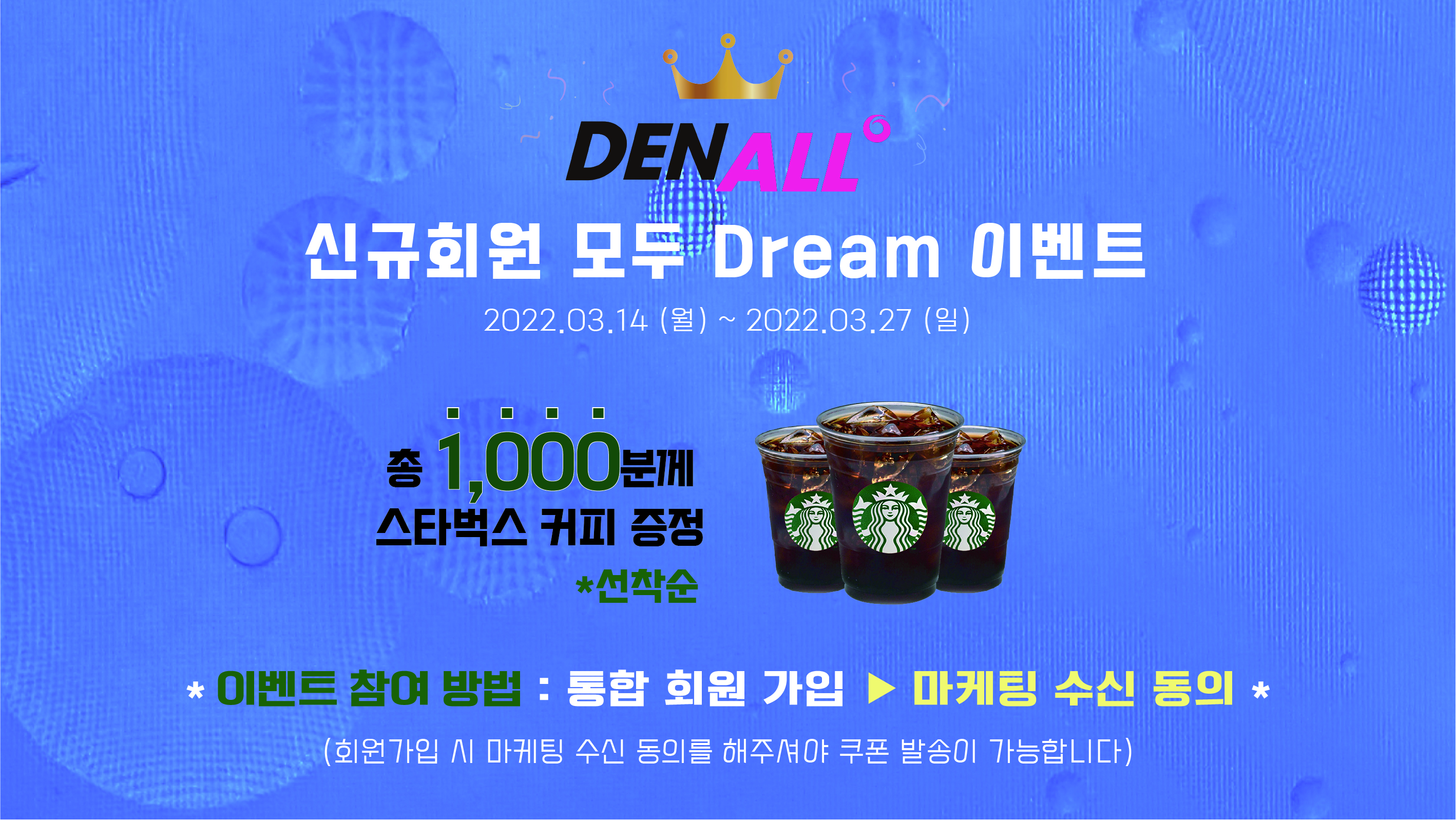 | 이벤트 | 신규회원 모두 Dream 이벤트 (조기 마감) | 등록일 2022.03.11 | 조회수 8978 | 공유하기 | ||