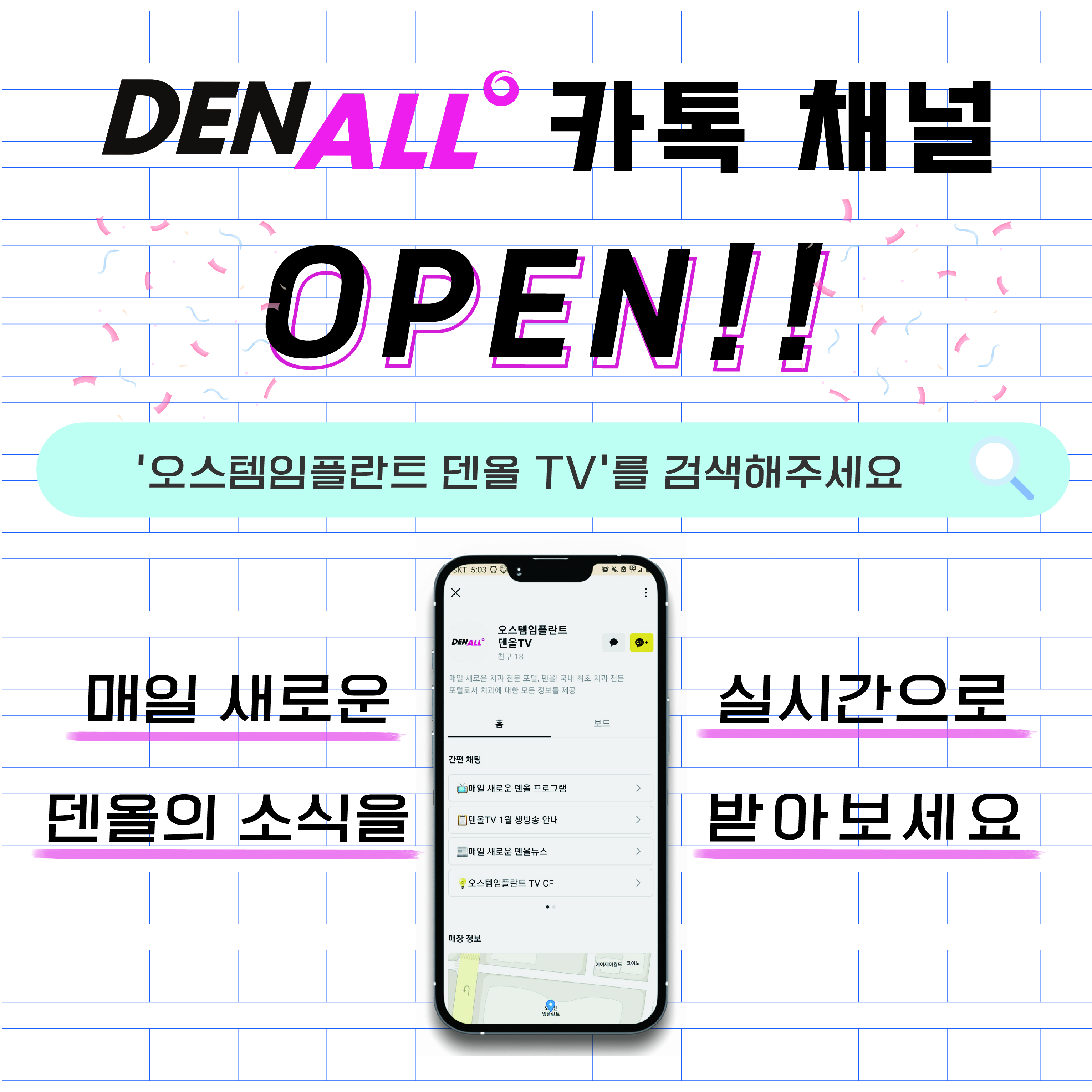 회원 여러분들의 뜨거운 성원에 힘입어 이벤트가 조기 마감 되었음을 알려드립니다. 추후 덴올 회원 여러분을 위한 새롭고 다양한 이벤트로 찾아뵙겠습니다. 다시 한 번 감사드립니다. (선착순 1,000명의 회원분들께는 공지 된 4월 4일 월요일 쿠폰이 일괄 지급 될 예정입니다) ![]() 치과전문포털 DENALL이 신규회원 1,000분께 커피 기프티콘을 드립니다! 1. 이벤트 소개 신규회원 모두 Dream 이벤트 이벤트 기간 동안 신규가입해주신 회원분들께 커피 기프티콘 발송 (선착순 1,000명) 2. 이벤트 기간 2022.03.14 (월) ~ 2022.03.27 (일) 3. 이벤트 응모방법 ① 이벤트 기간 내 덴올 통합회원 가입 (마케팅 수신 동의 필수) (※ 마케팅 수신 동의해주신 회원분들께만 쿠폰 발송이 가능합니다) 4. 경품 발송 이벤트 종료 후 04.04(월) 쿠폰 일괄 발송 ------------------------------------------------------------------------------------------------------- ※ 이벤트 유의사항 - 잘못된 개인정보로 인한 경품 발송 오류는 책임지지 않습니다. - 이벤트 응모/추첨과 관련한 내용은 공개하지 않습니다. - 이벤트 진행에 따라 쿠폰이 조기 소진 될 수 있습니다. ![]() ★ 덴올 카카오 채널 Open! ★ https://pf.kakao.com/_FQYxjb 오스템 덴올TV 채널을 친구 추가하고 매일 새로운 덴올의 소식을 실시간으로 받아보세요~ |